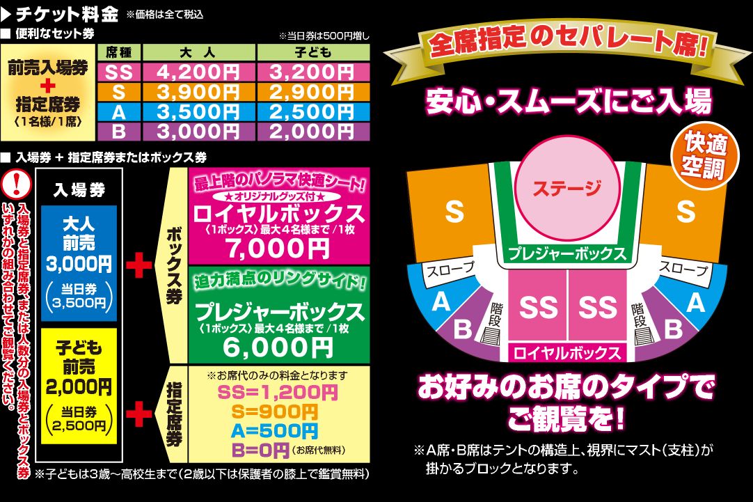 ●「入場券」をお持ちのかたは別途「ボックス券」又は「指定席券」のみが必要です。